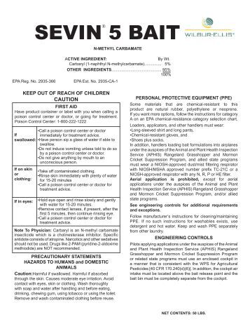 Sevin SL Label - Bayer Sevin SL Label 4.5" 7.75" CCARBAR YL INSE ECTICIDE SL E T O C A I Turf Spot T I CAU KEEP OUT OF REACH OF CHILDREN PA Reg. No. 432-1227A Reg. No. 432-1227 (Contains 4 Pounds Carbaryl Per Gallon) TAL:AL: OTHER INGREDIENTS:....................................... Carbaryl (1-na te) ACTIVE INGREDIENT: Trreatm