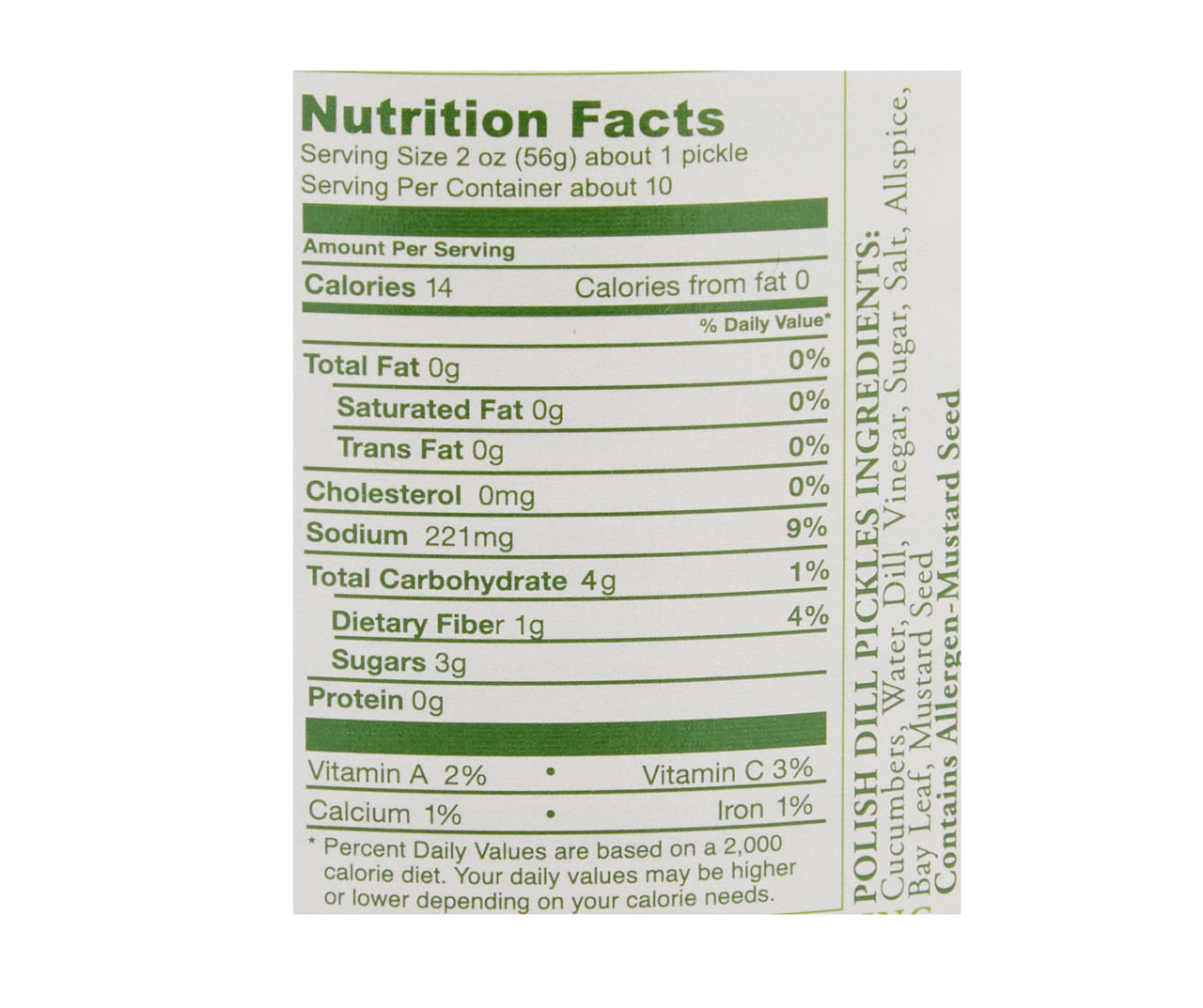Pickles Nutrition Label - This Nutrition Oh Snap Pickles Nutrition Label Effective, however we received't pay attention about it due to the fact you may't put it into a tablet bottle to your stockholders. Same with workout—can also improve immunity, and reduces illness rates from respiration infections. We're talking a 25 to 50% reduction in ill days.