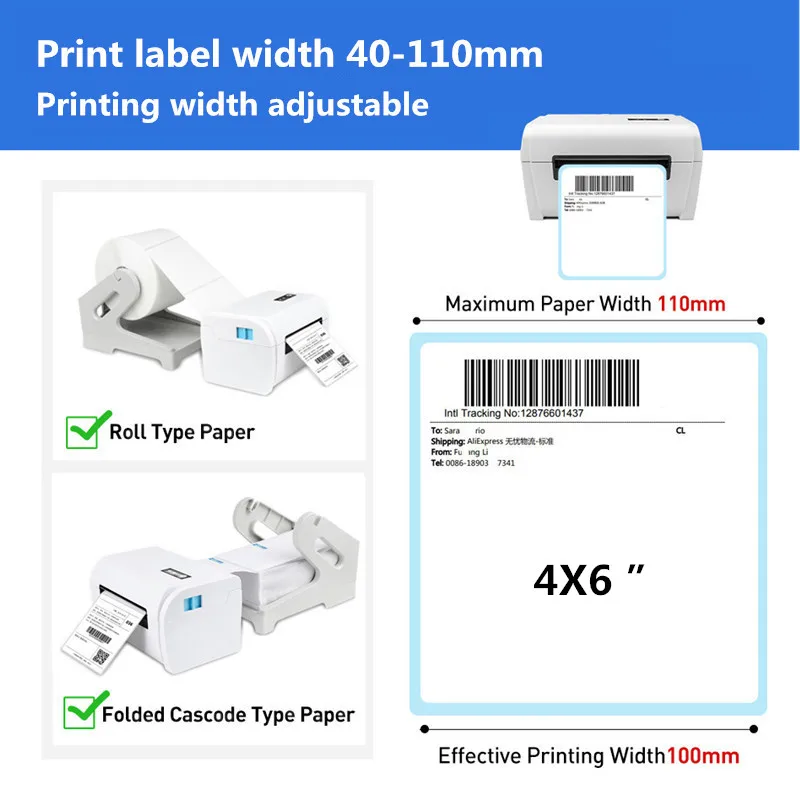 ZJ9200 Shipping Label Product Sticker 40-110mm General Express Waybill USB Mobile Phone Bluetooth 4 Inch Thermal Barcode Printer
