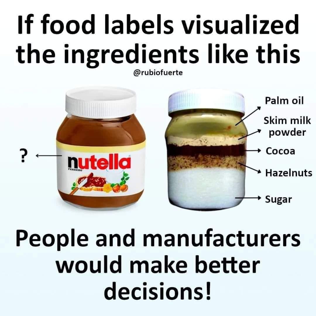 Why is palm oil unethical? Revealing image shows how much of the ... But a diagram shared online showing the ingredients of Nutella may make you think twice about the treat - especially if you have concerns about controversial palm oil, sometimes listed as ...