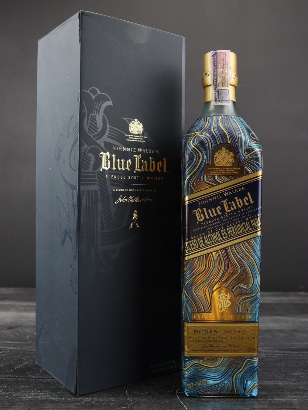 Whisky Review: Johnnie Walker Blue Label - The Whiskey Wash The transparent bottles have a subtle blue hue to them through which the whisky inside takes on shades of vibrant green in addition to gold. Each bottle of Blue Label is individually numbered on the lower label parallel to the base. Blue Label features no age statement and is bottled at 40% ABV (80 proof). Tasting Notes: Johnnie Walker Blue Label
