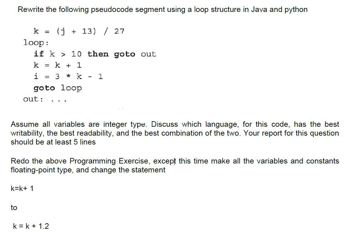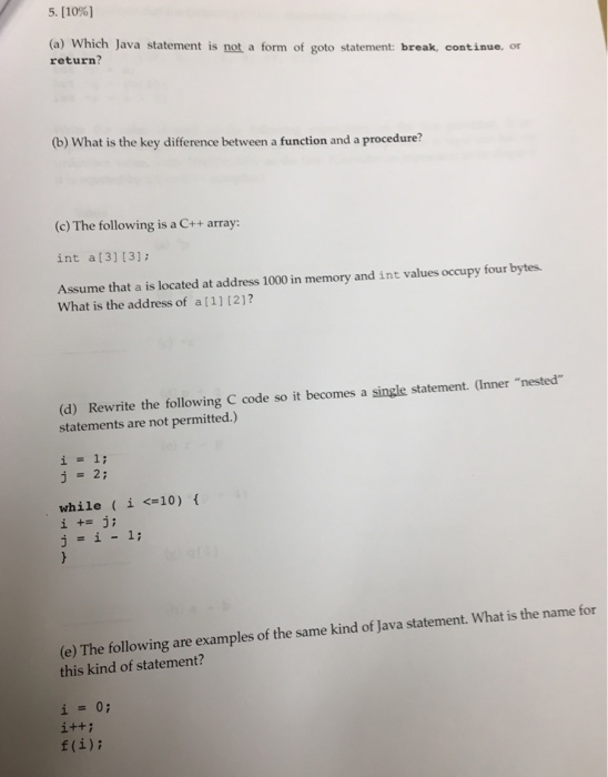 Goto statement in java. programming practices - Is using goto ever worthwhile? - Software ... A goto statement, on the other hand, tends to correspond to a concept in the running program, not in the problem domain. It says to continue execution at a specified point in the program. Someone reading the code has to infer what that means with respect to the problem domain. Exception-handling statements - throw and try, catch, finally The try-finally statement. In a try-finally statement, the finally block is executed when control leaves the try block. Control might leave the try block as a result of. normal execution, execution of a jump statement (that is, return, break, continue, or goto), or; propagation of an exception out of the try block. Go Goto Statement - Javatpoint The Go goto statement is a jump statement which is used to transfer the control to other parts of the program. In goto statement, there must be a label. We use label to transfer the control of the program. Go Goto Statement Example: package main import ( "fmt" ) func main () { var input int Loop: fmt.Print ("You are not eligible to vote ") How to go back to a specific line in Java? - Stack Overflow Java has no goto statement (although the goto keyword is among the reserved words). The only way in Java to go back in code is using loops. When you wish to exit the loop, use break; to go back to the loop's header, use continue. while (true) { // Do something useful here... ... System.out.println ("Do you want to continue?